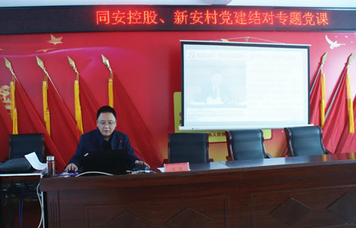 王亮同志以《党建引领谱写乡村振兴新篇章,党员聚力共绘美好家园新画卷》为题,为两支部与会党员上了一堂生动的专题党课。党课先后宣讲了十九届六中全会、省第十一次党代会和市第十二次党代会精神,并围绕实施乡村振兴战略的重大意义、乡村振兴的总体要求、党建引领谱写乡村振兴新篇章、党员聚力共绘美好家园新画卷等四个方面,就如何在乡村振兴工作中发挥党支部战斗堡垒作用和党员先锋模范进行了深入阐述。通过此次专题讲党课活动,促进了同安控股与新安村的党建工作交流和党员思想交流,为今后深入开展支部和党员学习教育活动、促进共同发展起到了良好的推动作用。