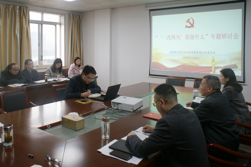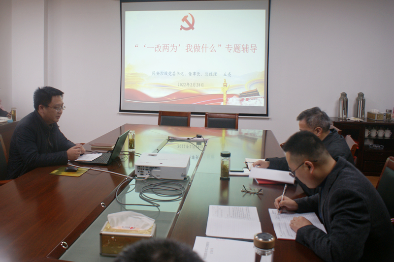 为进一步推动全省改进工作作风为民办实事为企优环境大会精神在公司走深走实、落地生根,2月28日下午,公司党委书记、董事长、总经理王亮作“‘一改两为’我做什么”专题辅导,并主持召开专题研讨会。公司领导班子成员,各党支部书记,各部室(子公司)主要负责人,机关党支部全体党员、入党积极分子参加会议。
