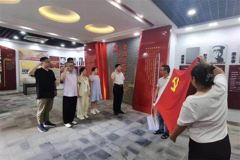 在安徽省建党地址,面对着鲜红的党旗,全体党员同志重温入党誓词,用铮铮誓言向党作出郑重承诺。在黄镇纪念馆,大家认真聆听了黄镇同志革命事迹和为新中国革命事业,他为外交事业立下了卓越功勋。