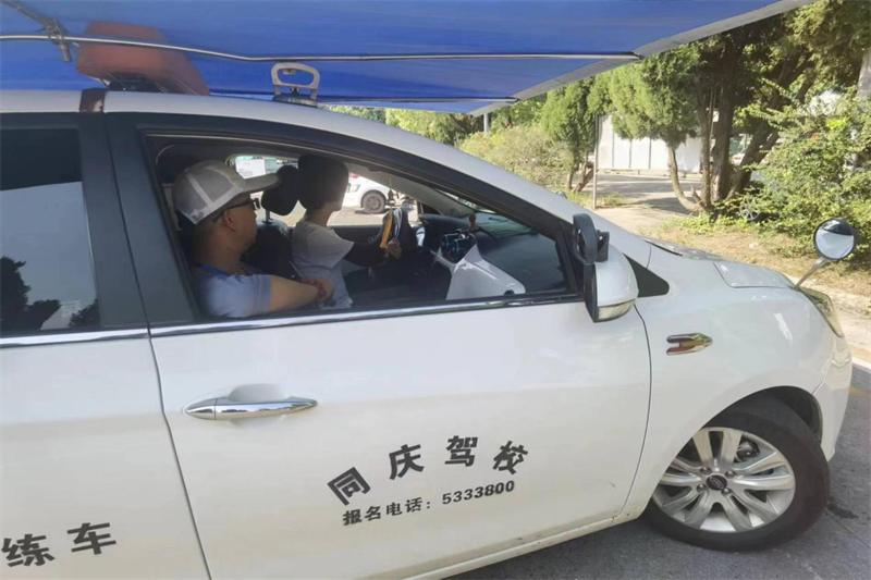 每天,教练员们要在这样的高温环境中坚守4~5个小时,尤其是面对高考生学员初学者,更需要为他们引导路线和标注每个动作需要看的标志物,教练员们不仅要忍受烈日下的高温,还要忍耐车辆发动机和地面热浪的“夹击”。