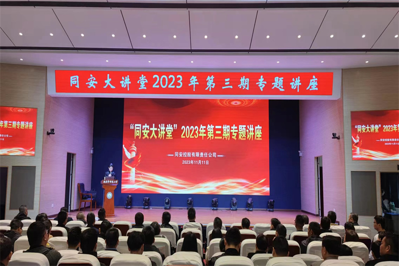 为扎实推动学习贯彻习近平新时代中国特色社会主义思想主题教育走深走实、取得实效,引导党员干部持续提升党性修养、感悟初心使命,11月11日上午,同安控股举办“同安大讲堂”2023年第三期专题讲座。安徽省委讲师团宣讲专家高奎应邀讲授《认真学习贯彻新时代党的建设总要求,努力做好新形势下的国企党建工作》课程,公司党委委员、副总经理盛丽君主持。